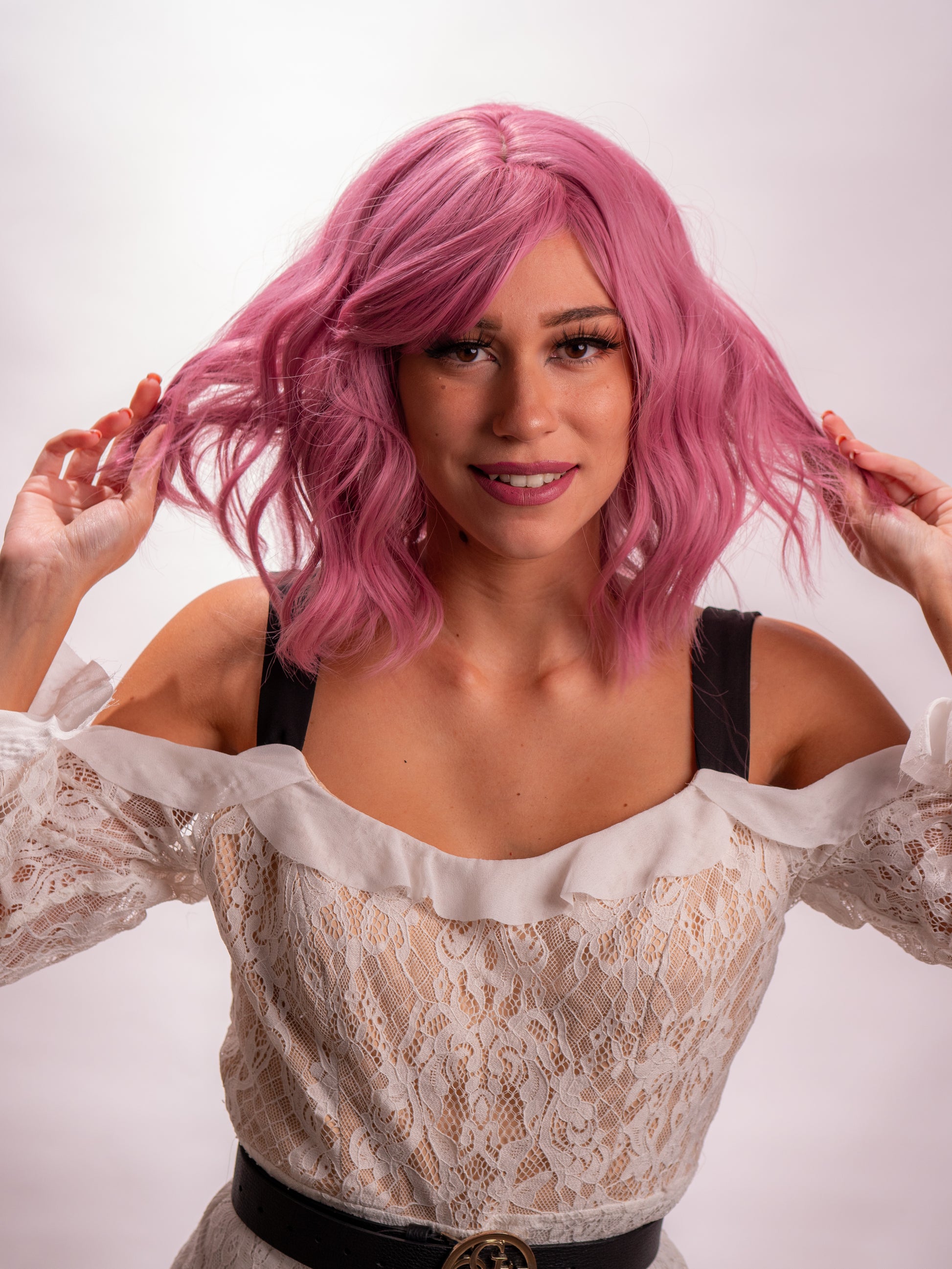 Long bob con frangetta ed onde delicate vi doneranno un aspetto fresco e romantico. Per chi ama il rosa è una vera chicca.